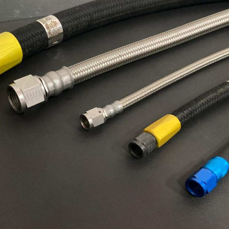 Montagem e teste de mangueiras de borracha, trama de aço, trama de borracha e aço de teflon. Usamos material Eaton e Aeroquip.